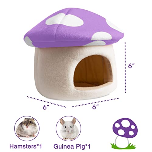 Hollypet Pet Bed Small Animals Bed Dutch Pig Hamster Nest Hedgehog Rat Chinchilla Guinea Habitat Mini House, Purple Mushroom, S